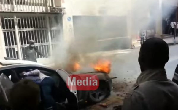 Regardez. La Mercedes neuve prend feu sur l'avenue Ponty de Dakar