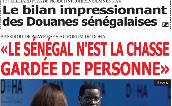 La Une de Le Réveil met en avant deux faits marquants : Douanes sénégalaises : un bilan impressionnant Avec 1,33 milliard FCFA de produits prohibés saisis en 2024, les Douanes sénégalaises...
