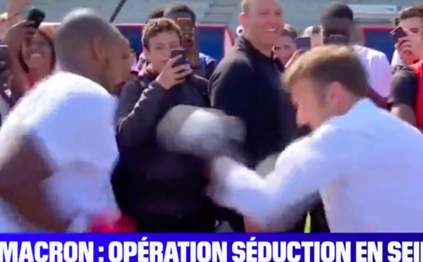 Emmanuel Macron chausse des gants de boxe et échange quelques coups lors de son déplacement en Seine-Saint-Denis