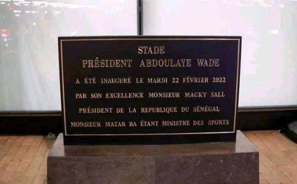 "Le  stade Sénégal "devient le "stade Abdoulaye Wade".  Découvrez la plaque du stade Abdoulaye Wade de Diamniadio inauguré, hier mardi, par le Président de la République du Sénégal, Macky...