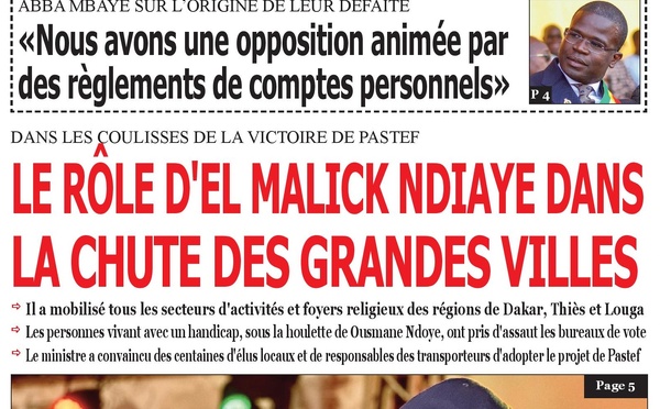 La Une du journal Le Réveil revient sur l'analyse de la défaite des adversaires de Pastef lors des dernières élections législatives, en mettant en lumière les propos d'Abba Mbaye, qui pointe du doigt...