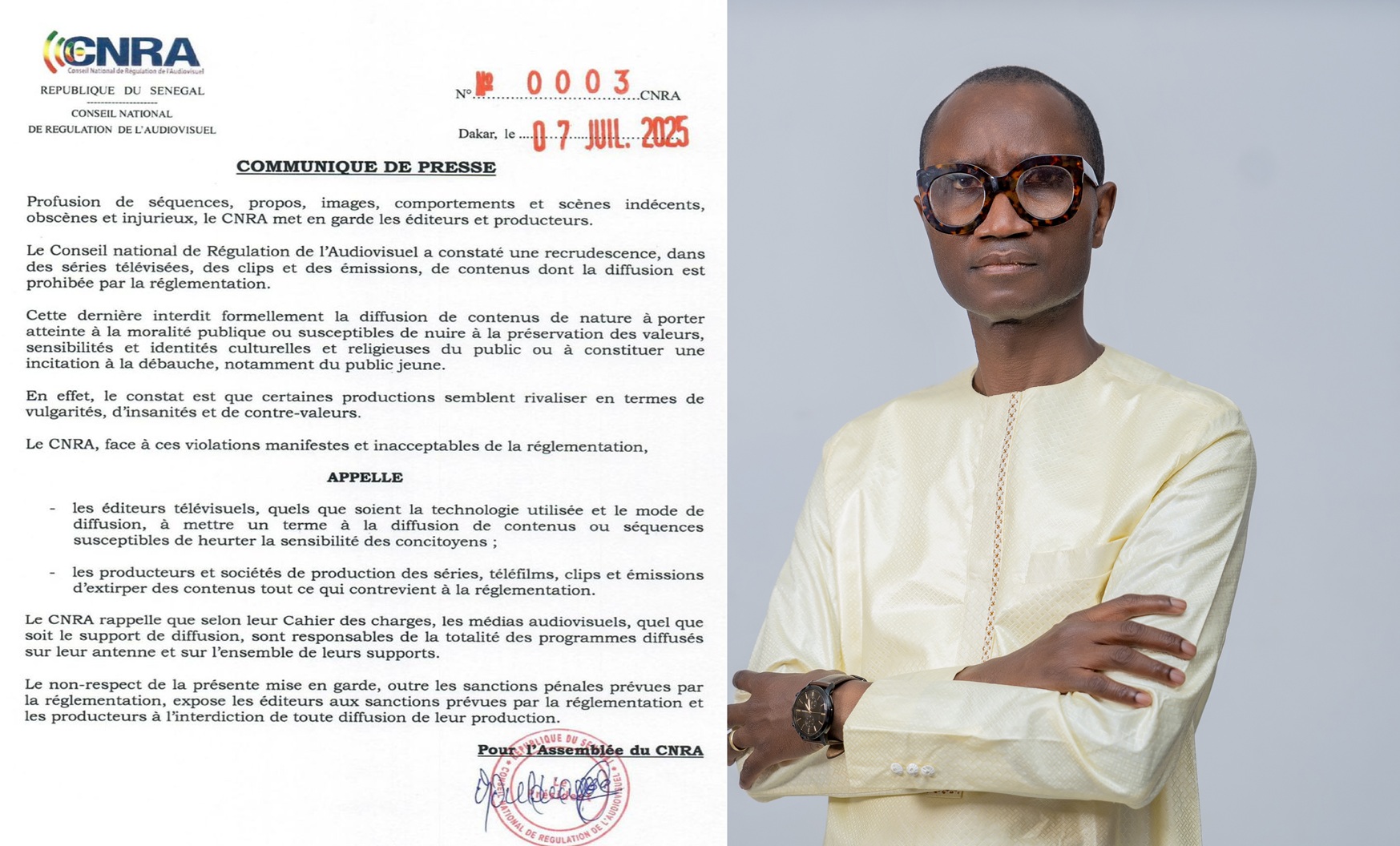 Dans un communiqué envoyé à exclusif.net, le tout nouveau leader de l’Alliance pour la Citoyenneté et le Travail, Ibrahima THIAM ne mâche pas ses mots : « Ce n’est pas seulement une émission que l’on tente de suspendre, c’est une parole plurielle que l’on cherche à effacer. » Dans son viseur, la récente mise en cause de l’émission Jakaarlo, connue pour son ton libre et ses débats contradictoires, visiblement devenue la cible régulière du CNRA.