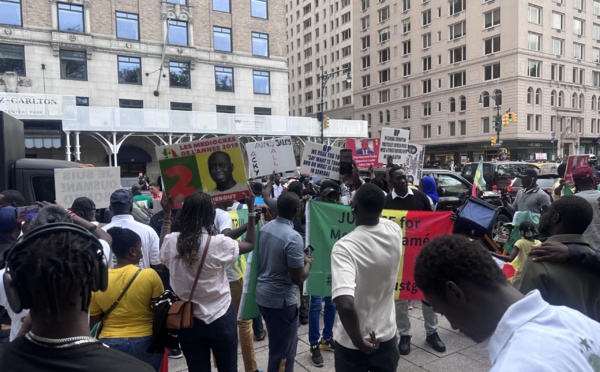 New York : forte mobilisation des Sénégalais devant l’hôtel où loge Macky Sall pour exiger la libération de Sonko et CIE