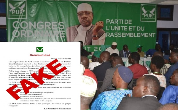 Le Parti de l’Unité et du Rassemblement (PUR) a fait part de son indignation face à la diffusion de communiqués frauduleux émanant de sources inconnues, sans validation par ses instances...